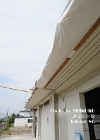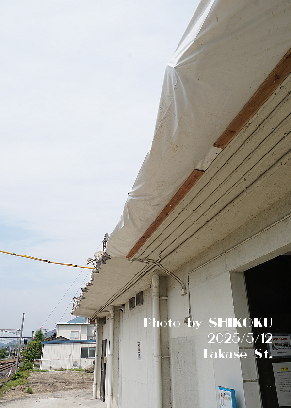 庇の撤去は、恐らく工事用の囲いを設置するに当たって支障する部分を取り除いたものと思われる。