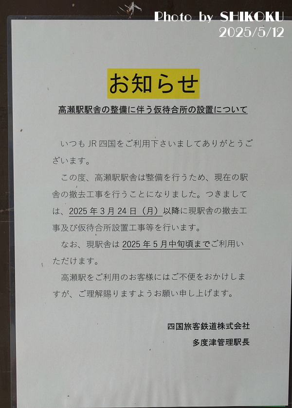 併せて、旧駅舎は5月中旬には完全に閉鎖する旨の告知が掲出されていた。 |