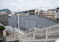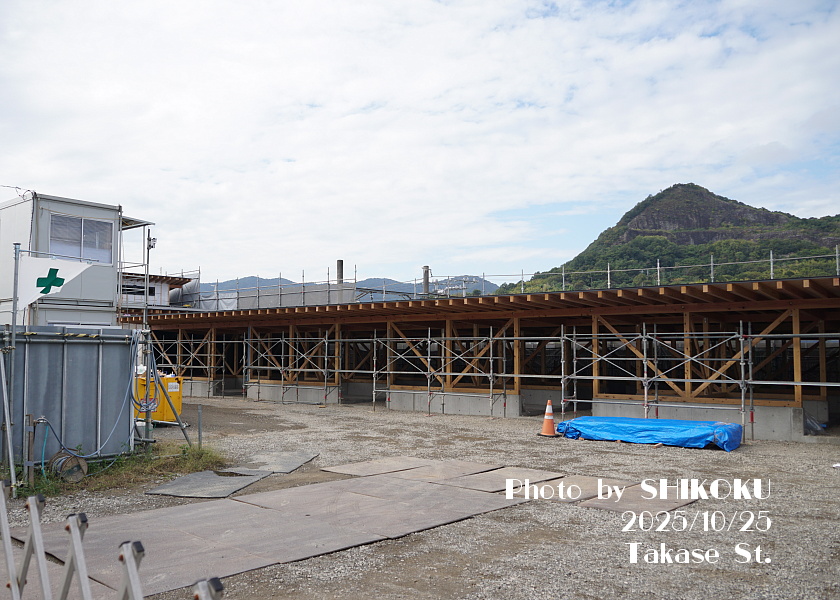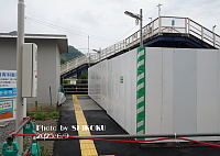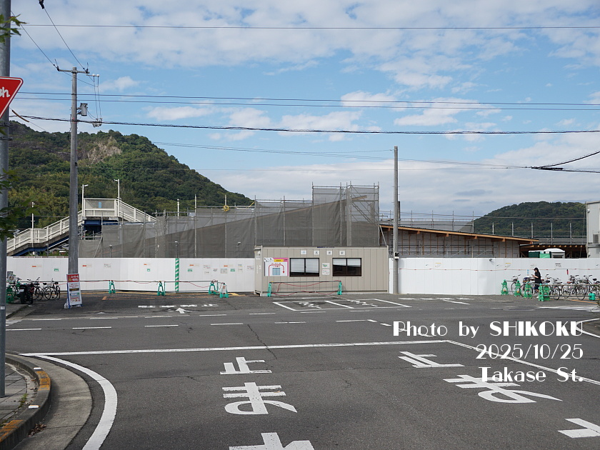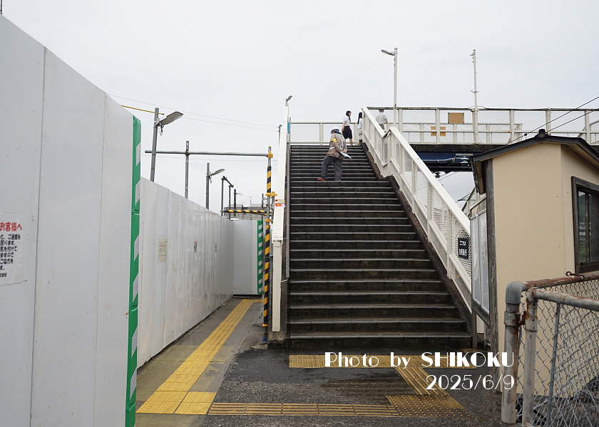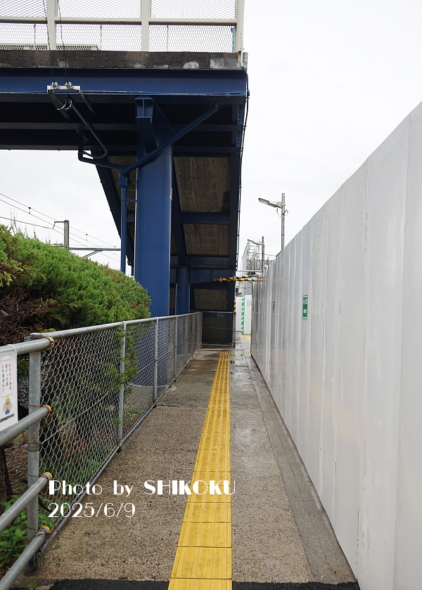 仮駅舎の左側から、工事現場を迂回する形で仮設の通路が設けられていた。