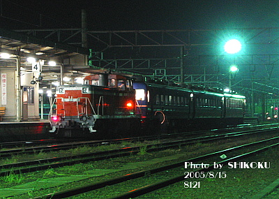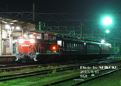 「ムーンライト松山」も運転開始から10年を過ぎ、「ムーンライト高知」も既に18年目に突入しているが、いまだに定期列車化の声を聞かないばかりか、車両も基本的にほぼ運転開始当初のままで、果たしてこの列車を育てる気があるのかどうか、はなはだ疑わしい。 設備面では、広大なシートピッチを誇るグリーン車や「ザコ寝」可能なカーペット車は多少魅力を感じるのだが、普通車の方はほぼ昔のままの14系座席車を使用しており、いくら安いとはいえ、あれで一夜を明かすのは少々きつく、「それなら高速バスの方がマシ」と思われても仕方がない。 『JRTの「ムーンライト」のように』とは言わないので、せめてもう少し綺麗な車両を使って、運転日ももっと増やすなど、「やる気」のあるところを見せてくれれば、多少は利用する気になろうかと思うのだが・・・・ |