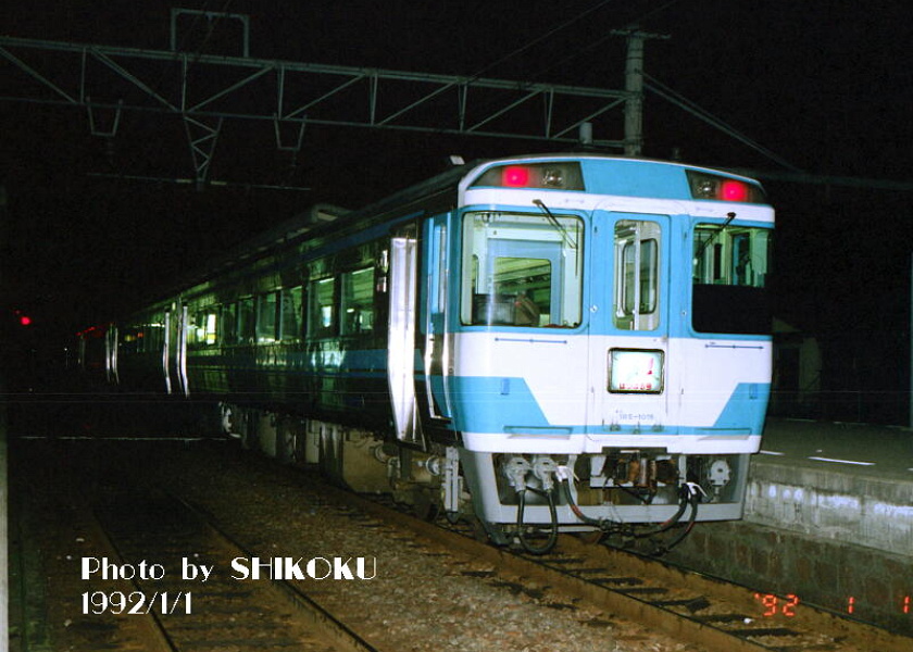 ![]() 予讃線 多度津駅 1992年1月1日 かつて松山〜琴平間に運転されていた、初詣臨時特急「はつはる」も、キハ185系充当の定番波動臨時列車であった。 |