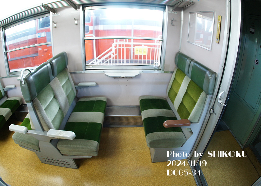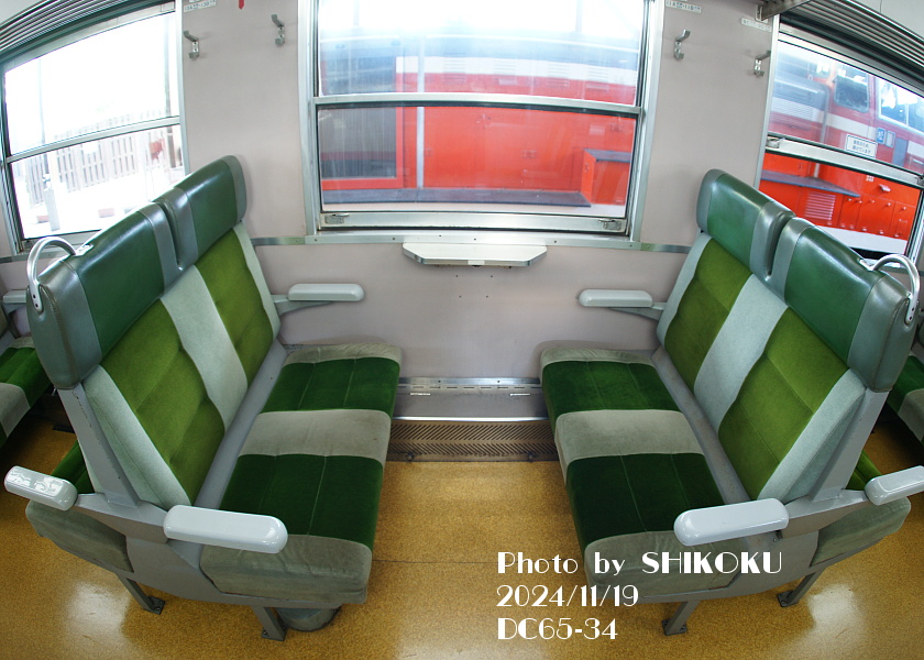 ![]() 四国鉄道文化館 2024年11月19日 シートピッチは1,580mmで、キハ58系より110mm広い。 |