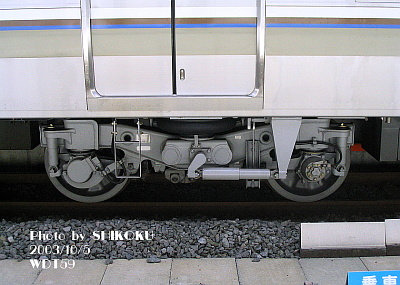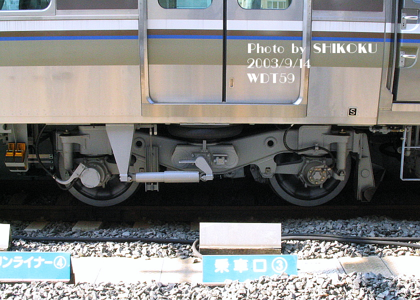 ![]() 2003年6月22日 製造中の223−5000系と5000系。 左の妻面を見せている車両が5000系。 スカートの形状が、営業運転開始後と異なっているのに注目。 |