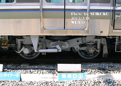 ![]() 2003年6月22日 此方は「普通」幕のクモハ223−5005。 営業運転では付かない、幌が付いているのも注目。 |