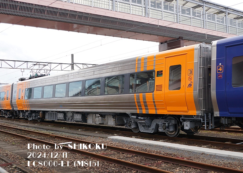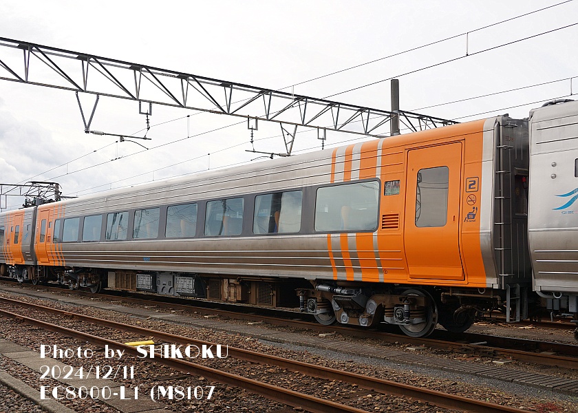 8200形のリニューアル車。 「いしづち」用S編成6号車の自由席車。 基本的に外装の変更のみとなっており、室内は従来のままである。 S1編成6号車の8201形とは、モーターや台車、床下機器類の配置、それに出入口ドア窓の大きさなど、細部にかなりの違いがある。 |