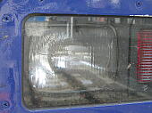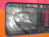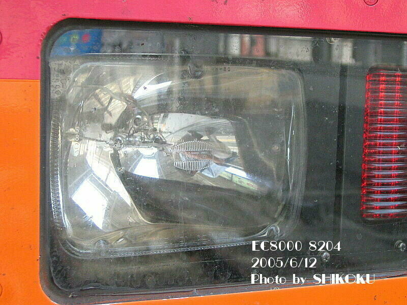 2000系のヘッドライトが小糸製なのは、既に別項で記載しているが、8000系のシールドビーム式ヘッドライトは、小糸製の他に東芝製もあることが発覚(笑) 左画像では無茶苦茶判りにくいが、8204形は小糸製、8205形は東芝製であるのが判る。 両者の差異はというと、外観上はガラス面の仕上げ方が異なるというのが大きな違いで、表面のフラットな小糸製に対して、東芝製はウェーブ状に波打っている。 8205形の他、8403形も東芝製を装備しているのが確認できている。 ・・・がしかし、これは厳密に使い分けられているわけではなさそうで、8203形では東芝製と小糸製が混用されているのを確認(2005年6月26日)。 恐らく点検や故障の際の交換時に、そのとき予備としてあるものを使い回しているものと思われる。 |