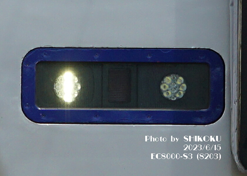2024年8月現在、オリジナルのシールドビームのまま残っているのは、L1編成とS3編成のみとなっている。 2024年12月、L1編成がLED灯に交換されて要検出場した。 2025年3月にS3編成がLED化されて要検出場し、これで8000系のオリジナルのシールドビームは消滅した。 |