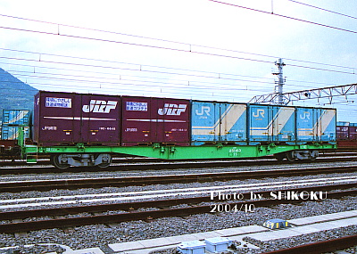 基本的にコキ50000形に積載が禁止されていた背高コンテナであるが、車両限界等に比較的余裕のある瀬戸大橋線区間ではランテックのUF42A等を積載して走行することもあった。