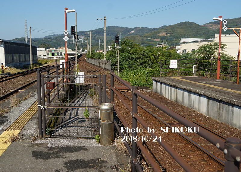 2番ホームは島式ではなく片面のみの使用で、2本の片面ホームが一方向きに並んでいる。このような配置となっている駅は、JR四国内ではここだけである。