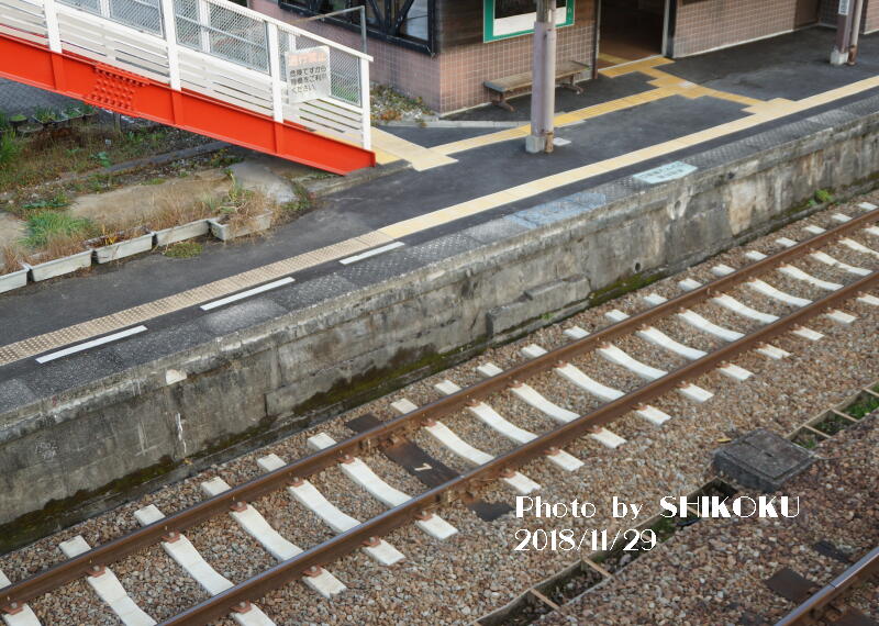 ・・いや、逆にホーム柵が何故か駅名票を追い出すように設置されていると言うべきであろうか?