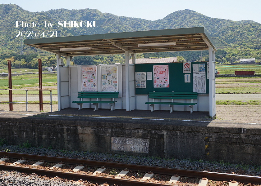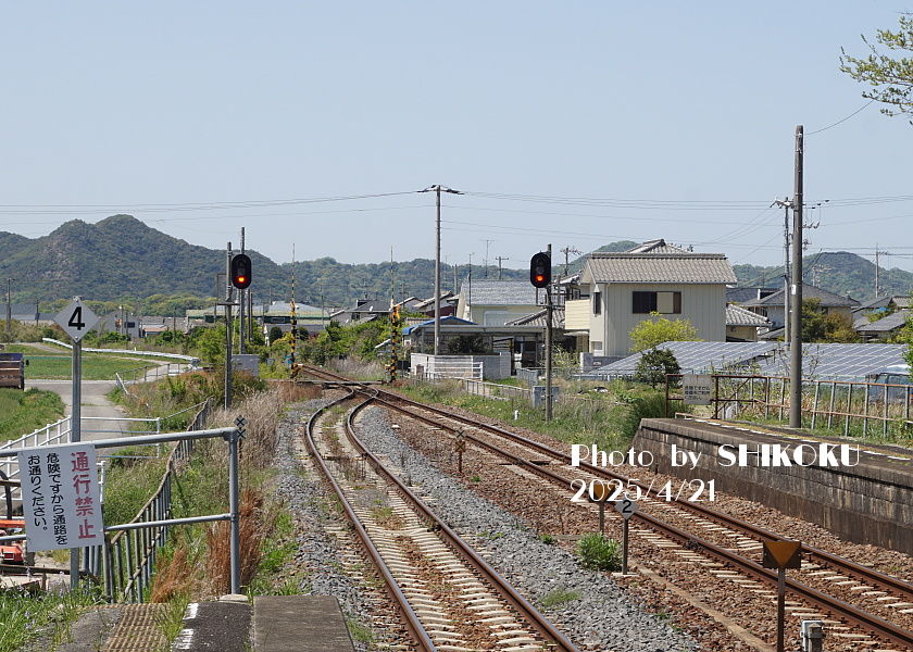 場内分岐の手前に、高徳線の48kmのキロポストが建っている。 |