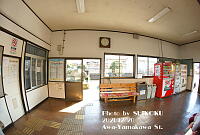 画像右手が駅舎正面出入口、中央正面がホーム側。