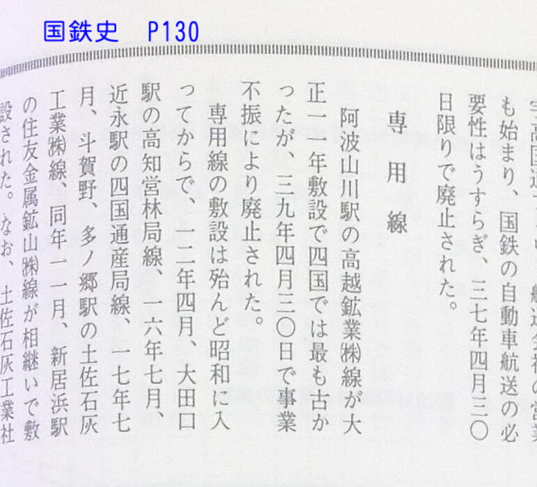 「国鉄史」という資料によれば、かつて阿波山川には高越鉱業の専用線があったという記述があり 、相応の貨物扱い量があったと想像される。