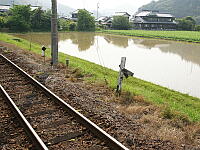 ホームの上り方端部は柵で区切られて使用停止になっており、すぐ横の踏切の制御装置が設置されている。