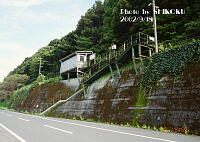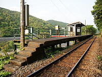 ホームへの登り階段は、途中から新しく継ぎ足されている。