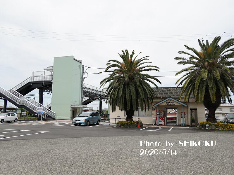 駅のすぐ北側には、予讃線の200kmのキロポストがある。