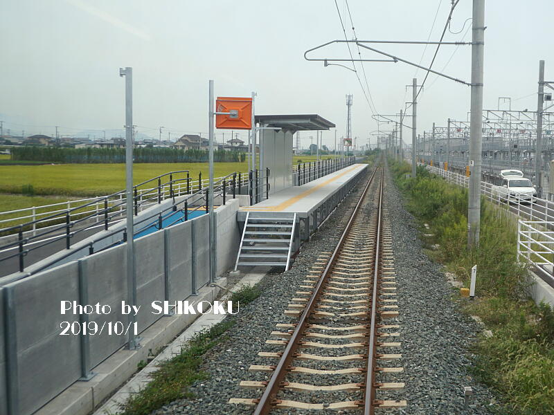 松山駅高架化の一環で、松山運転所が市坪〜伊予横田間の予讃線沿いに移転し、同地に松山駅の貨物扱施設を隣接移転した松山貨物ターミナル駅を開設するのに伴い、地元の要望により設置された新駅であり、駅名も地元の要望によるもの。