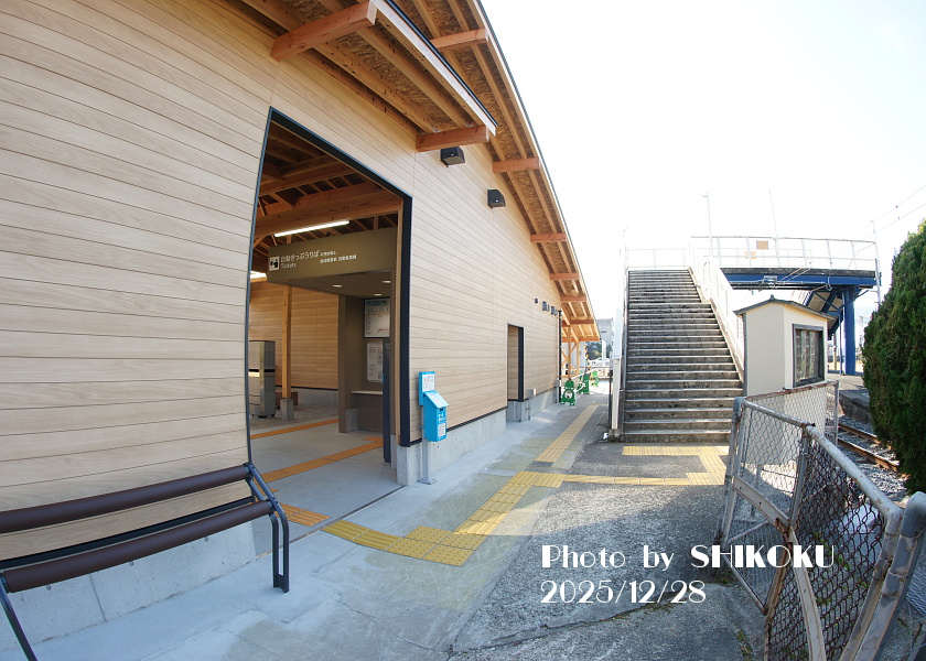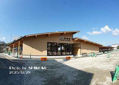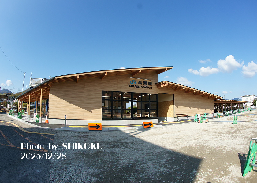 旧高瀬町の中心駅。 2008年に三豊市役所の本庁舎が駅前の通りに移転したことから、市役所への最寄り駅となった。 2023年度までは詫間と同様に、平日昼間のみ多度津から社員が派遣されて窓口業務を行っていたが、2024年3月15日をもって窓口は常時閉鎖となり、実質的に無人駅化された。 データイムの特急は基本的に通過し、朝夕と夜間帯の一部列車のみが停車する。 国鉄時代は、一部の急行列車までが停車していた(ただし国鉄最後のダイヤ改正で、初めて特急が停車するようになった)。 1913年の開業当初は「上高瀬駅」を名乗り、1959年10月1日に現駅名に改称した。 駅前から三豊市のコミュニティバスが発着している ※三豊市コミュニティバス 旧駅舎は老朽化により2025年に取り壊され、三豊市の費用拠出による新駅舎が同年末に完成・オープンした。 高瀬駅駅舎建て替え工事進捗状況(別タブで開きます) なお蛇足であるが、解体された先代駅舎は1959年6月完成であり、わずか4カ月間だけ「上高瀬」を名乗っていたことになる。 |