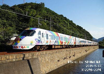 いしづち4号 予讃線 坂出駅 2012年5月5日 2013年3月16日改正では、高松地区の帰宅時間帯にかかる下り27/29/31号の3本が、「しおかぜ」との併結駅が宇多津から多度津に変更された。 その他の運転系統については、変更はない。 2014年3月15日改正では、2000系の夜の上り宇和島始発列車が松山で系統分割されて松山始発に変更となった。 また、朝の下り新居浜始発列車が「モーニングEXP松山」に、朝の上り伊予西条始発列車が「モーニングEXP高松」に、それぞれ名称変更となった。 さらに、「しおかぜ」と併結となる列車については号数が「しおかぜ」に揃えられ、その関係で「2号」が欠番となった。 単独運転となる5本については100番台の号数が割り振られ、101〜104/106号を名乗っている。 結果、2000系気動車が高松〜松山間下り3本/上り2本、高松〜宇和島間上り1本の合わせて3往復。8000系電車が高松〜松山間14往復の、合わせて17往復体制となった。 このうち、2000系の高松〜松山間1往復と、8000系の下り1本/上り2本のみが単独運転で、他は全て「しおかぜ」との併結となる。 なお併結列車のうち、下り23/25/27/29号のみが多度津〜松山間の併結運転となり、それ以外は全て宇多津〜松山間が併結運転となる。 2016年3月26日改正では、新型8600系電車の量産車の投入により、全列車が電車化されて運転区間が高松〜松山間に統一され、ついに宇和島直通列車が消滅した。 また、JRの特急で同一愛称で電車と気動車の2本立ては、2011年3月改正で「はしだて」「まいづる」に287系とKTR8000形が投入されるまで、1993年3月改正以降では全国でもこの「しおかぜ」と「いしづち」だけであったが、全列車電車化によってこれも無くなった。 結果、高松〜松山間に8000系が12往復と8600系が5往復の、合わせて17往復となった。 8000系の内の3往復がアンパンマン車両で、さらにその内の1往復についてはグリーン車が連結されており、「いしづち」でグリーン車の連結があるのはこの1往復だけとなっている。 2018年3月17日改正で、高松〜松山間の8000系列車1往復が8600系に置き換えられたが、運行系統やダイヤに変更は無い。 なお同年GW以降、通常のモノクラス2両編成をクロハ込みの3両編成が代走するパターンが登場しており、その場合は「しおかぜ」との併結で8両編成となることが時折見られるようになった。 2018年から登場した”クロハ”込みの「いしづち」 ![]() いしづち17号 予讃線 八十場〜坂出間 2018年5月17日 一般車との混パンマン ![]() いしづち22号(手前側3両:後ろ5両は「しおかぜ22号」) 予讃線 海岸寺〜詫間間 2018年5月24日 此方は綺麗なアンパンマン ![]() いしづち22号(手前側3両:後ろ5両は「しおかぜ22号」) 予讃線 海岸寺〜詫間間 2018年8月19日 川之江で貨物列車を追い越す「いしづち」 ![]() いしづち22号(手前側3両:後ろ5両は「しおかぜ22号」) 予讃線 川之江駅 2019年1月17日 大学入試に伴う「しおかぜ」「いしづち」分離運転に際して、2600系による 「代走いしづち」が初登場し、高松駅では8600系「いしづち」との並びも実現した ![]() いしづち23号(左)/いしづち26号(右) 予讃線 高松駅 2019年2月25日 2019年3月16日改正では、基本ダイヤと運行体系に変更は無いが、夕方帰宅時間帯の下り1本の「いしづち」との分割駅が宇多津から多度津に変更された。 高松〜松山間に8000系が12往復と8600系が5往復の、合わせて17往復となっている。 豊浜駅構内の線路点検の影響でダイヤが乱れ、