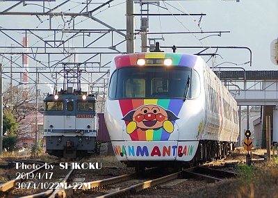 代走で「アンパンマンしおかぜ+いしづち」の先頭に立つN2424形