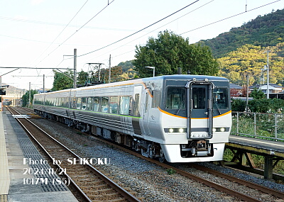(2枚とも) 「いしづち18号(前部2両:後部5両は「しおかぜ18号」) 予讃線 海岸寺〜詫間間 2021年12月23日 2022年3月12日改正では、下り最終の29号が伊予西条〜松山間廃止されたほか、上り最終の106号が新居浜〜高松間廃止となった。 これに合わせて車両運用が一部変更となり、「しおかぜ」との併結列車は8600系列車が1往復減ってその分8000系列車が増えたが、単独運転の上り列車1本が逆に8000系から8600系に変更となった。 結果、計17往復体制はそのままに、高松〜松山間に8000系が11往復と8600系が5往復、高松〜伊予西条間に8000系が下り1本、新居浜〜松山間に8600系が上り1本という陣容となった。 JR西日本・岡山支社管内の運行システムトラブルの影響により、全編成高松発着なって、